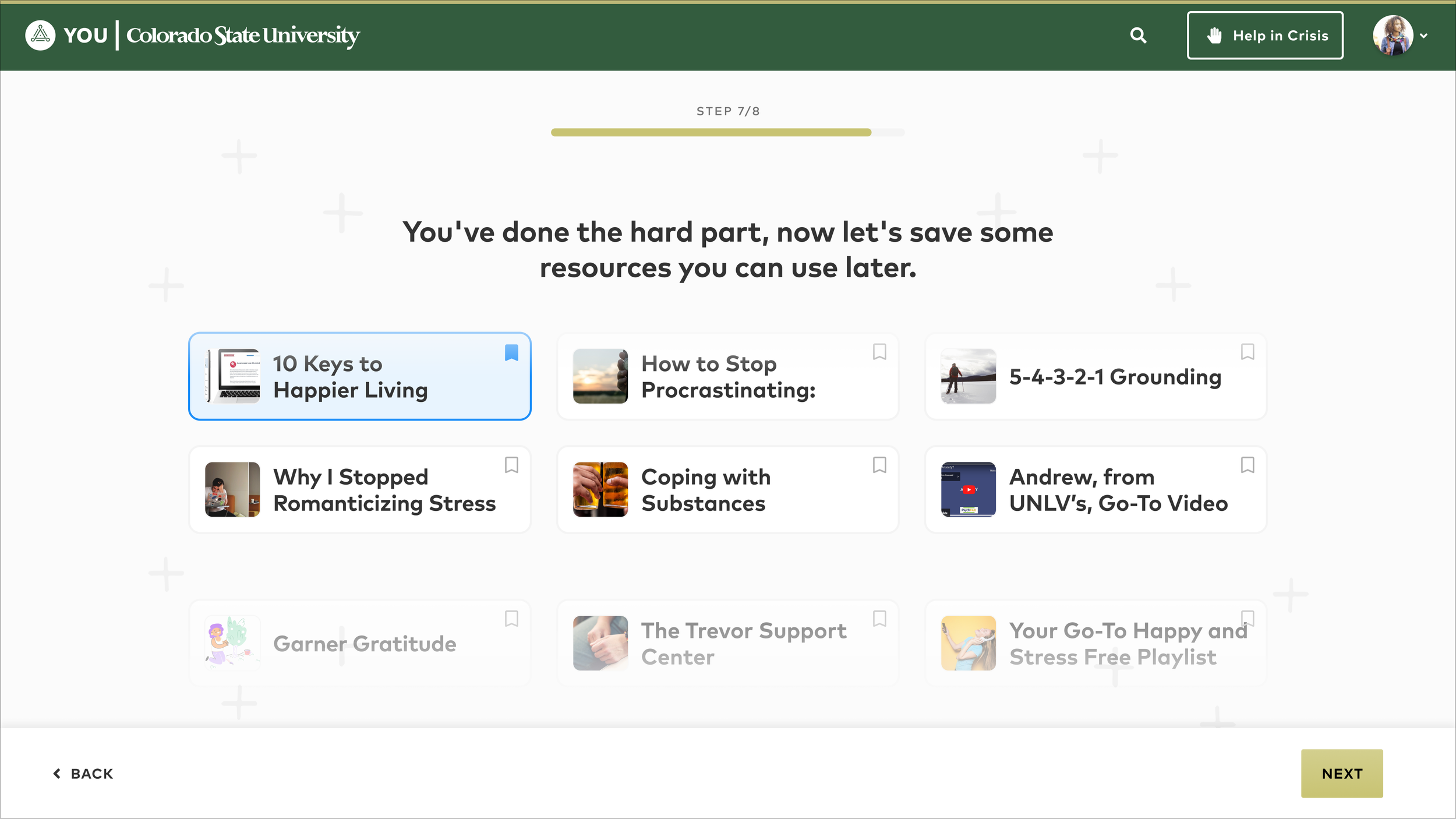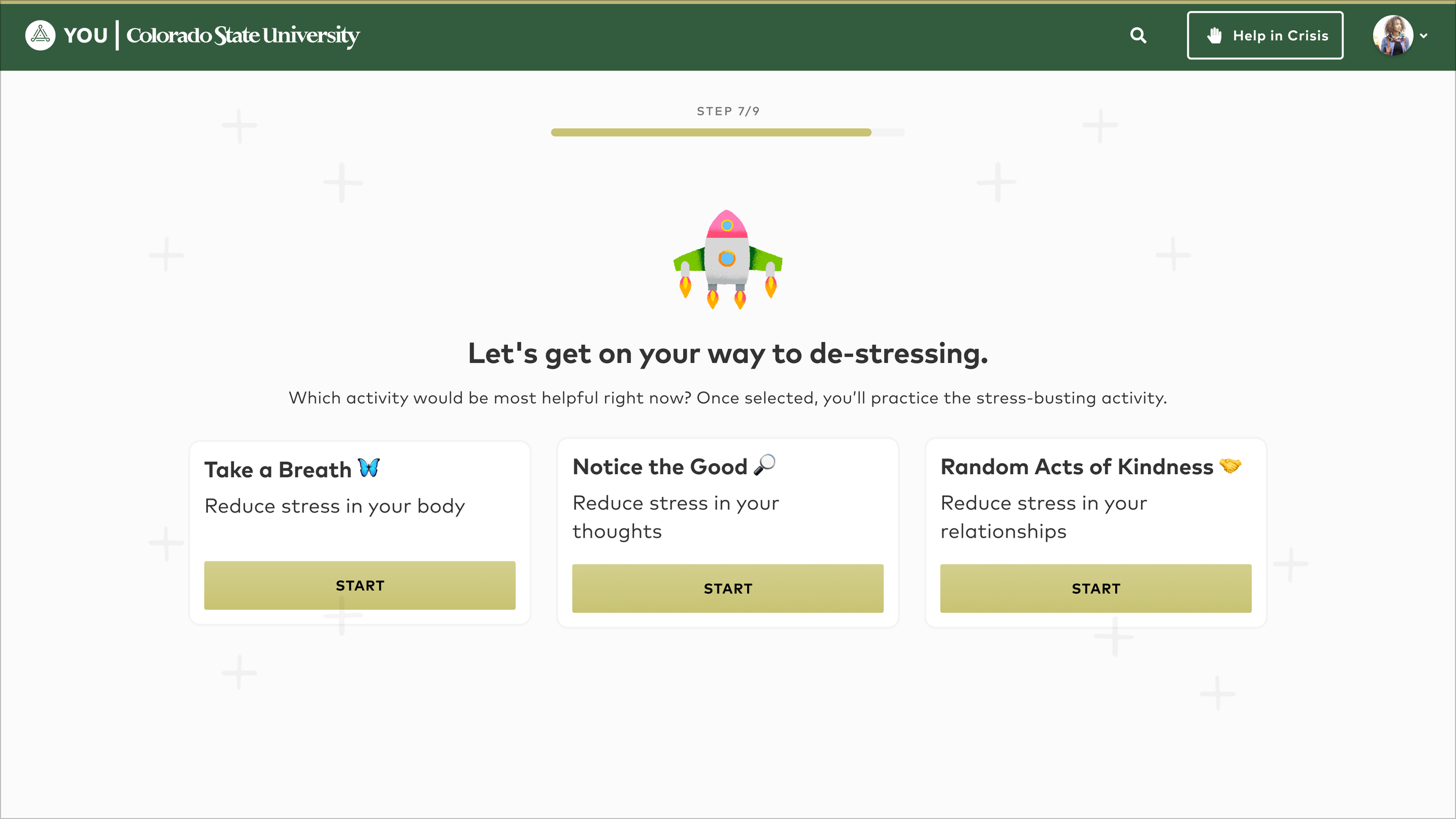 Give users the choice of three evidence-based stress management techniques