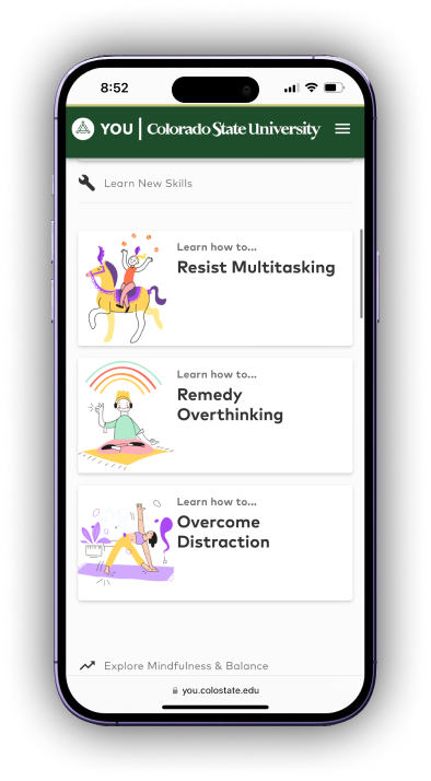 While YOU at College sourced expert advice, and campus resources, there was a lack of “action-oriented” content for users to upskill and positive impact their current levels of well-being.