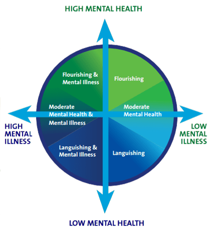 As defined and measured by pre-post administration of empirically-validated Keyes Mental Health Continuum Short Form